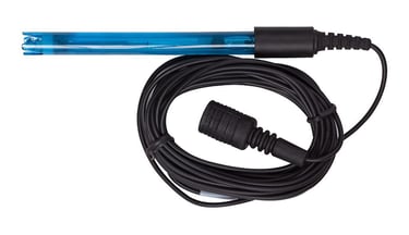 Chlorine is measured by a Redox probe for salt electrolysis. In general, a Redox of 700mV corresponds to 1 ppm of chlorine. The redox sensor is covered with a protective layer of gold.